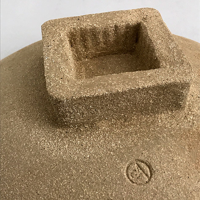 Stoneware and a mixed-clay blend are used to give the solid, heavy feel. A limited number of pieces include a 23ct gold leaf applied to the stamp.